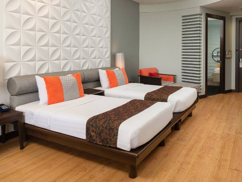 โรงแรมที่หรูหราและทันสมัยมีการออกแบบโรงแรมเป็นทรงปิรามิด ล้อมรอบด้วยสวนธรรมชาติ ทำให้มองเห็น วิวทะล ได้อย่างชัดเจน ห้องพักทุกห้องมีทีวีจอแบนพร้อมช่ องสัญญาณดาวเทียม พื้นที่นั่งเล่น ห้องน้ำส่วนตัวติดตั้งอ่างอาบน้ำ มีรองเท้าแตะฟรีและเครื่องเป่าผม ห้องพักมีวิวทะเลหรือวิวสระว่ายน้ำ