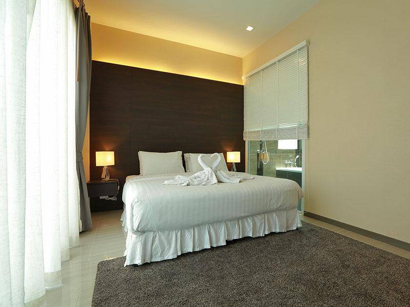 เป็นวิลล่า 2 ชั้น 4ห้องนอน 5ห้องน้ำ และแบบ 3 ห้องนอน 4 ห้องน้ำ ทุกห้องนอน มีแอร์ ห้องน้ำในตัว ห้องนอนใหญ่ อยู่ชั้นสอง เป็นเตียงใหญ่ ขนาด 6 ฟุต มีตู้เสื้อผ้า อ่างอาบน้ำกลางแจ้ง ระบบน้ำร้อน-น้ำเย็น ฝักบัว ห้องแต่งตัว มีห้องรับประทานอาหาร อุปกรณ์ในครัวครบครันสามารถทำอาหารได้