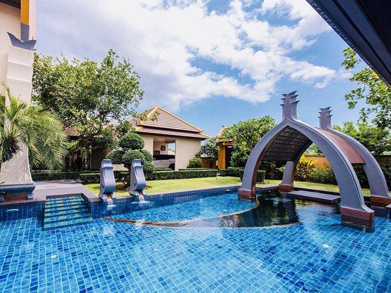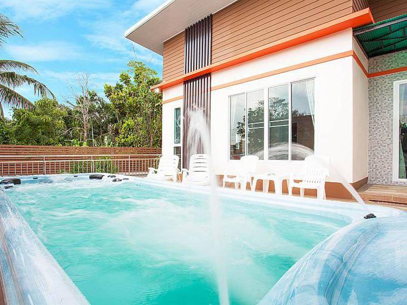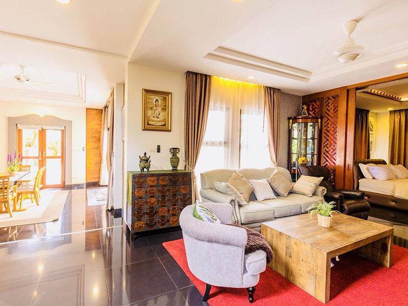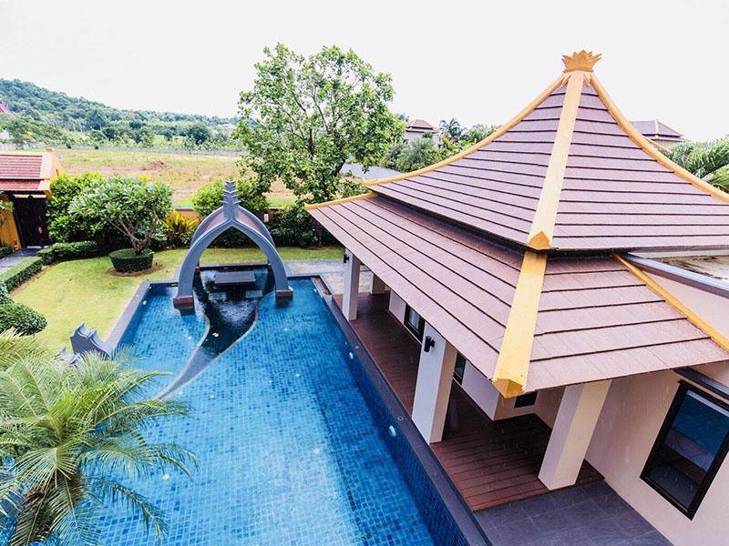 บ้านสมัยสไตล์ไทย มี 6 ห้องนอน 5 ห้องน้ำ ห้องครัว และห้องนั่งเล่น สามารถนอนได้ถึง 12 ท่านวิลล่าแห่งนี้เป็นตัวเลือกสำหรับเพื่อนกลุ่มใหญ่และครอบครัว