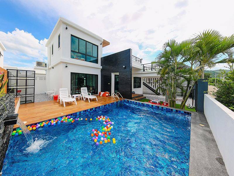 วิลล่าสไตล์โมเดิร์น แบบไทย-บาหลี พร้อมสระว่ายน้ำส่วนตัว ขนาดพื้นที่รวม 148 ตร.ว มี 4 ห้องนอน 4 ห้องน้ำ และ1 ห้องนั่งเล่น