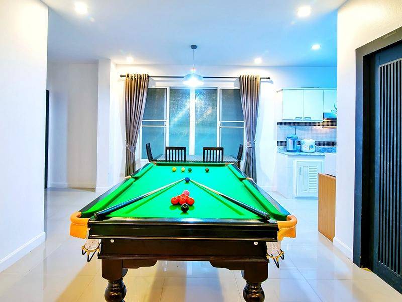 วิลล่าหัวหินนี้มี 2 ห้องนอน 2 ห้องน้ำห้องนั่งเล่น 1 ห้องครัวสมัยใหม่และสระว่ายน้ำกลางแจ้งส่วนตัว ขนาด 7×3 เมตร  โต๊ะพูล อุปกรณ์ครัวทำอาหาร เตาปิ้งย่าง ครบครัน