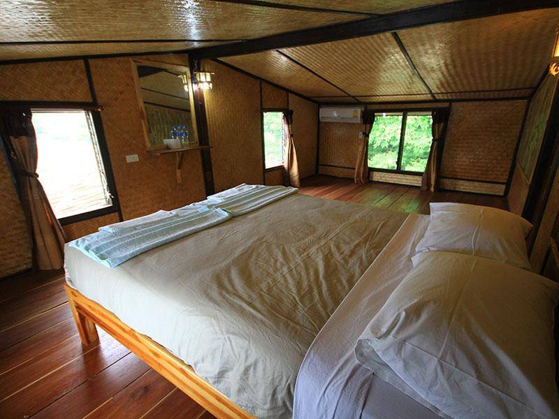 ห้องพักเเบบวิลล่าลอยน้ำ มีขนาดกว้างขวาง สะดวกสบาย ตกแต่งอย่างมีรสนิยมในการออกแบบสไตล์พื้นบ้านไทยด้วย เฟอร์นิเจอร์ไม้สัก ภายในห้องประกอบด้วยเครื่องปรับอากาศ, ทีวีแอลซีดีทีวีที่มีช่องทีวีดาวเทียม, เครื่องเล่นดีวีดี, อินเตอร์เน็ต และอื่นๆอีกมากมาย ใกล้แหล่งท่องเที่ยวมากมาย เช่น น้ำตก สะพาน ทางรถไฟ ตัวเมืองไทรโยค