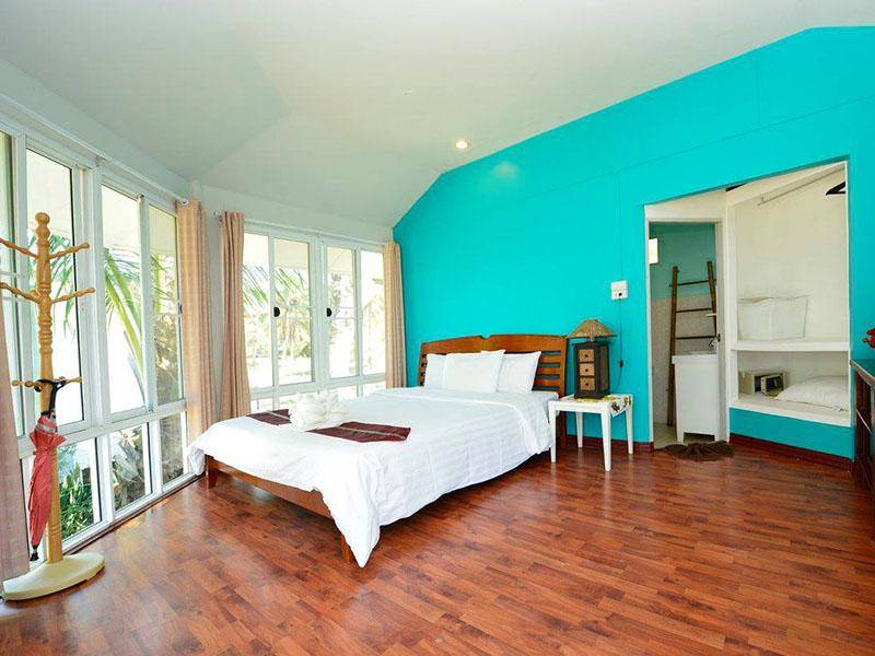 บ้านพักตากอากาศที่มีลานระเบียงสำหรับอาบแดด ห้องพักบางห้องมีพื้นที่นั่งเล่นสำหรับผ่อนคลาย และสามารถมองเห็นวิวทะเลอีกด้วย บรรยากาศดีมากล้อมรอบด้วยธรรมชาติ กิจกรรมของรีสอร์ทต่าง ๆ เช่น การดำน้ำตื้น และการดำน้ำลึก พร้อมทั้งติดกับหาดทรายขาวและน้ำทะเลใสสะอาด เหมาะสำหรับครอบครัว
