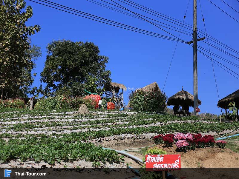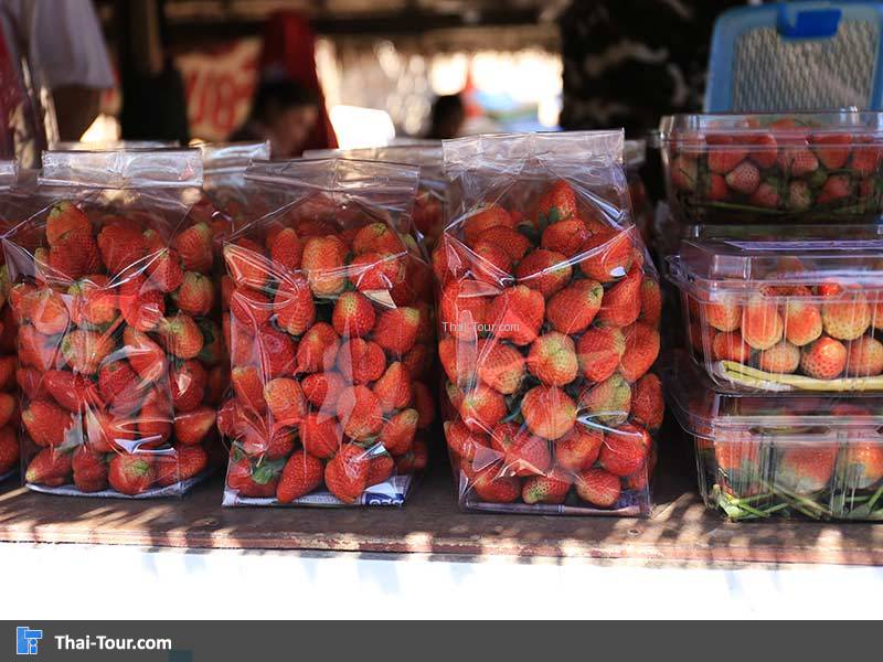 ไร่สตรอเบอรี่ที่ปลูกสตรอเบอรี่แห่งใหญ่ของเชียงใหม่ไร่สตรอเบอรี่พันธุ์หวานใหญ่ที่สุด ไม่สามารถเด็ดจากสวนได้แต่มีการจำหน่ายต้นกล้า, ผลสตรอเบอรี่ และผลิตภัณฑ์แปรรูปเช่นไอศกรีมสตรอเบอรี่อีกด้วย ลูกสีแดงสดใสน่ากิน เนื้อแน่น และรสชาติหอมหวานเมื่อสุกเต็มที่ สามารถเข้าไปถ่ายรูปในบริเวณไร่ได้