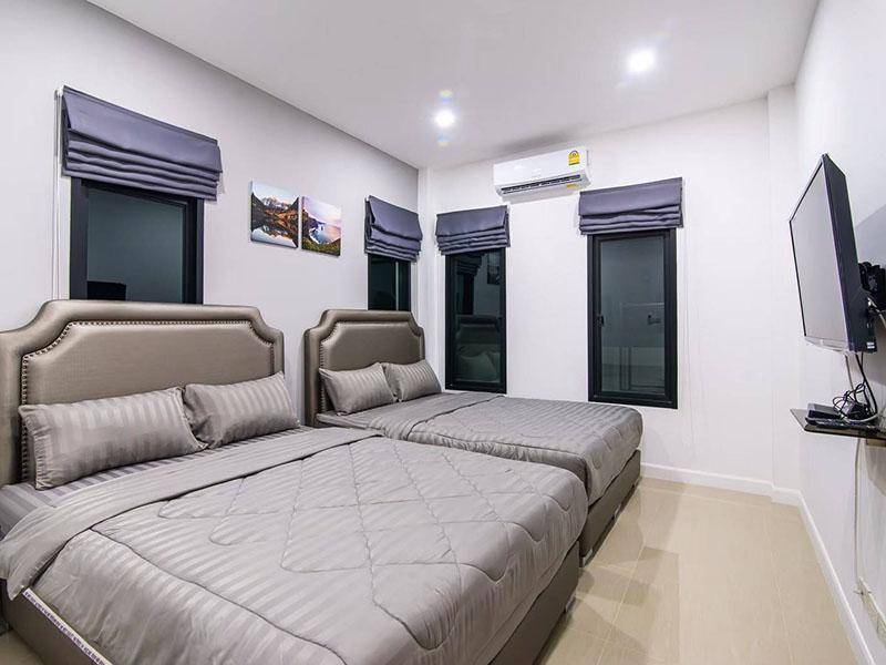 เมจิค พูลวิลล่า หัวหิน บ้านพักในหัวหิน บ้านพักที่มีพื้นที่กว้างขวาง มี 3 ห้องนอน 3 ห้องน้ำ 1 ห้องนั่งเล่น และ 1 ห้องครัว ภายในบ้านติดแอร์ทั้งหลัง ในการทำกิจกรรมภายในบ้าน ห้องพักสะดวกสบาย แบบห้องเตียงเดี่ยว ห้องครัวตกแต่งในสไตล์ยุโรป พร้อมด้วยอุปกรณ์ครัว สามารถทำอาหารทานได้ สำหรับนอกบ้านมีสระว่ายน้ำส่วนตัว พื้นที่สวนหย่อม และที่จอดรถ