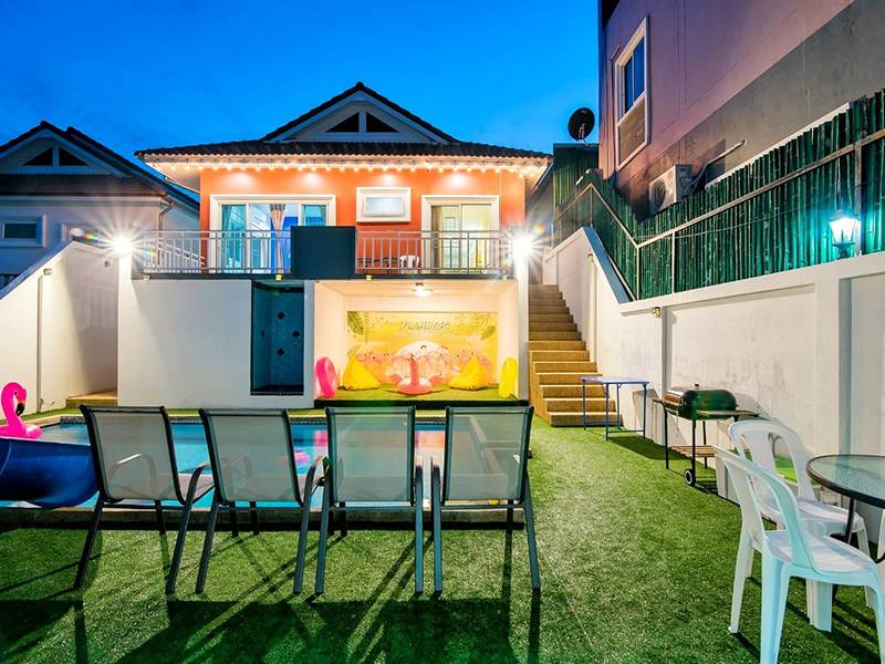 ฟามิงโก้ พูลวิลล่า ที่พักหลังใหญ่ในรูปแบบบ้านพักตากอากาศ ร่มรื่นไปด้วยสวนหย่อม มี 4 ห้องนอน 3 ห้องน้ำ ภายในบ้านตกแต่งอย่างดี ห้องพักแบบเตียงเดี่ยว สะดวกสบาย ห้องนั่งเล่น มีพื้นที่กว้างขวาง พร้อมด้วยชุดเฟอร์นิเจอร์ และทีวี สำหรับครัว มาพร้อมด้วยอุปกรณ์ครัว เตาประกอบอาหาร ตู้เย็น สามารถทำอาหารทานได้ภายในบ้าน สำหรับนอกบ้านมีสระว่ายน้ำ ขนาด 8 x 4 เมตร พื้นที่สวนหย่อมอันร่มรื่น และที่จอดรถ