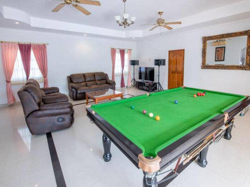 วิลล่า พูล ฮัท บ้านพักในพัทยาตะวันออก ประกอบด้วย 8 ห้องนอน ที่มีพื้นที่กว้างขวาง พร้อมห้องน้ำในตัว เหมาะสำหรับมาพักผ่อนปาร์ตี้กับหมู่คณะ มีสระว่ายน้ำขนาดใหญ่ ครัวเปิดริมสระน้ำทำอาหารได้ พร้อมเตาปิ้งย่าง
