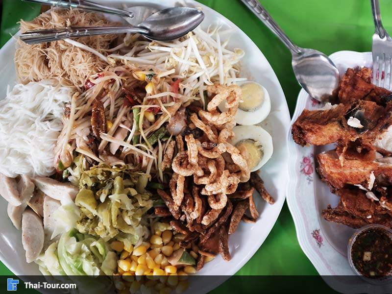 หลังจากนั้นเดินๆๆ หาว่าอะไรน่าสนใจดี เลยตัดสินใจทาน ส้มตำถาด ไก่ทอด
