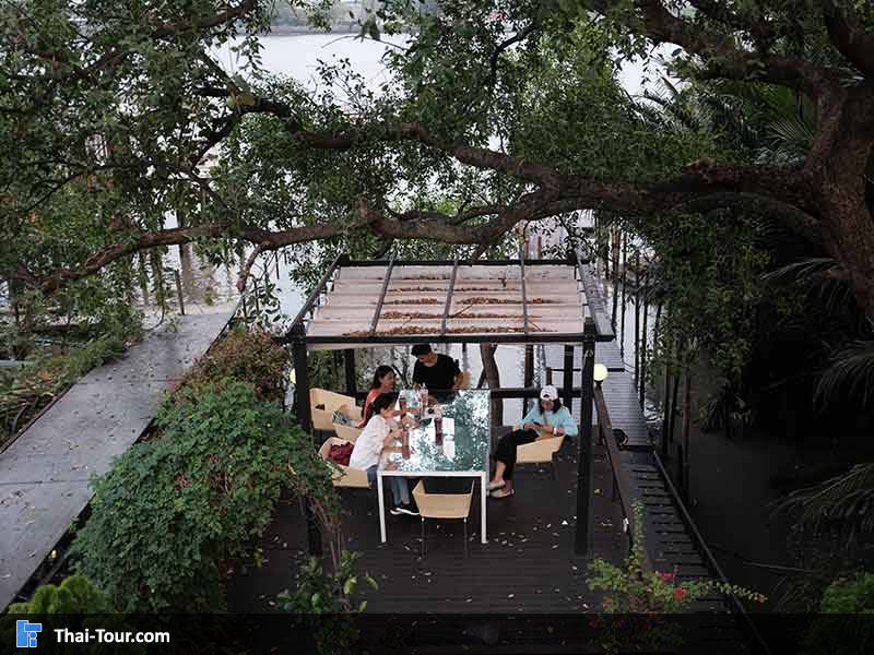 หลังจากที่ปั่นจักรยาน พักผ่อนชมบรรยากาสเสร็จแล้ว ก็แวะไปหาหาอาหารเย็นทานที่ร้าน bangkok three house บรรยากาศร่มรื่นมาก