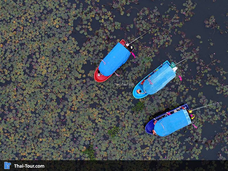 ทะเลบัวแดง เป็นสถานที่ยอดฮิตในช่วงฤดูหนาว จะบานเยอะมาก โดยจะมีบริการจากเรือนำเที่ยวของชาวบ้าน จะเริ่มเปิดบริการในช่วงเช้าเวลาตั้งแต่ 6.00 - 11.00 น. ช่วงเช้าเราจะได้เห็นดอกบัวบานได้อย่างเต็มที่ ถ้ามาเป็นช่วงบ่ายจะไม่เห็นเลย จะไม่บาน