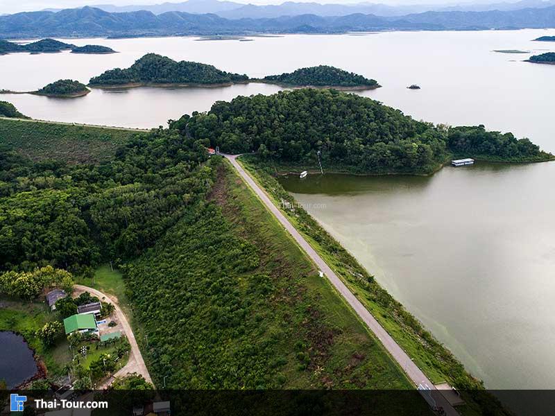 เขื่อนศรีนครินทร์ เป็นเขื่อนที่อยู่ทางตอนบนของแม่น้ำแควใหญ่ ถูกสร้างด้วยหินถมแกนดินเหนียวที่ใหญ่ที่สุดในประเทศไทย ซึ่งใช้เป็นเขื่อนเอนกประสงค์ทั้งด้านชลประทาน การลดปัญหาอุทกภัยในลุ่มแม่น้ำแม่กลอง และการผลิตกระแสไฟฟ้า และที่เหนือสันเขื่อนนี่เองก็มีวิวทิวทัศน์ที่สวยงามเหมาะสำหรับเป็นจุดท่องเที่ยว และยังตั้งอยู่ห่างจาก น้ำตกเอราวัณเพียง 4 กิโลเมตร
