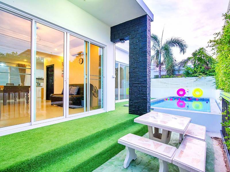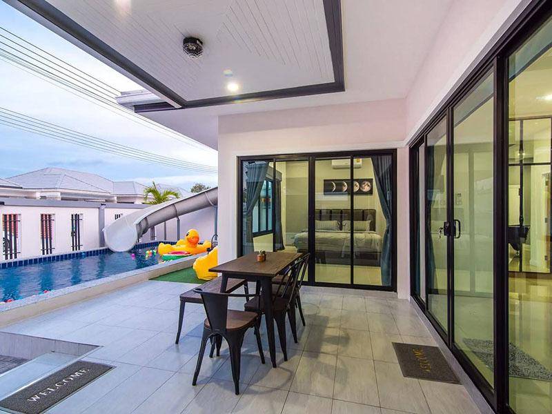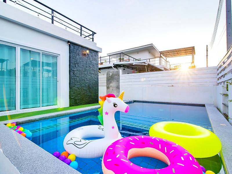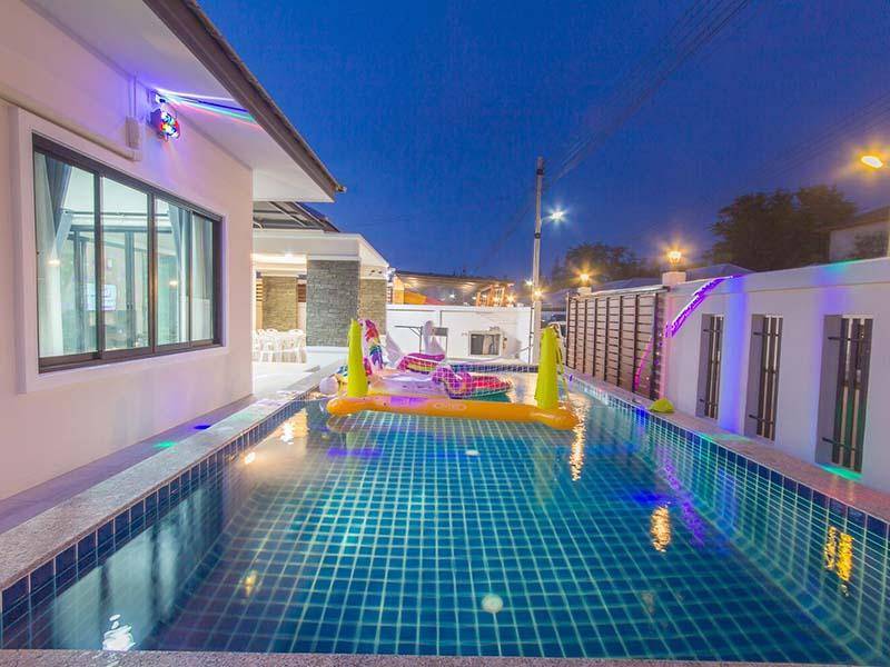บ้านพักที่ได้รับการตกแต่งในสไตล์โมเดิร์น ประกอบไปด้วย 3 ห้องนอน 3 ห้องน้ำ ภายในบ้านได้รับการตกแต่งอย่างดี ห้องพักสะดวกสบายพร้อมเตียงนอน และเครื่องปรับอากาศ มีห้องนั่งเล่น และพื้นที่สำหรับรับประทานอาหาร นอกจากนี้ยังมีสระว่ายน้ำส่วนตัว ชุดคาราโอเกะ เตาปิ้งย่าง และยังมีโต๊ะพูลอีกด้วย