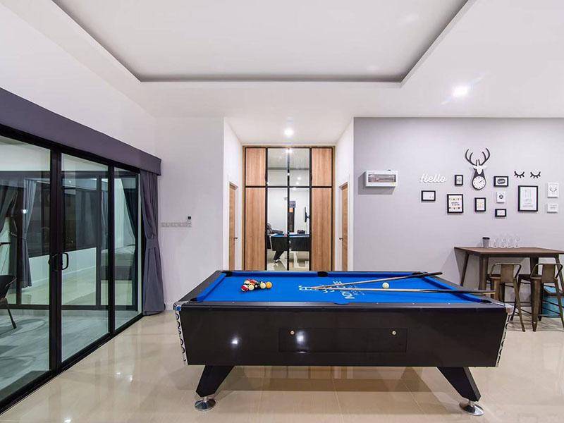 บ้านพักสไตล์ พูลวิลล่าหัวหิน ประกอบด้วย 3 ห้องนอน 2 ห้องน้ำ พร้อม 1 ห้องนั่งเล่น และห้องครัว ห้องพักมาพร้อมเตียงขนาดใหญ่ และเครื่องปรับอากาศ ห้องนั่งเล่นมีชุดโซฟา ทีวี และโต๊ะพูล และห้องครัวที่มาพร้อมอุปกรณ์ครัวที่ทันสมัย ทำอาหารได้ในระหว่างเข้าพัก พร้อมสระว่ายน้ำส่วนตัว และเตาปิ้งย่าง สำหรับปาร์ตี้บาร์บีคิวเล็กๆ