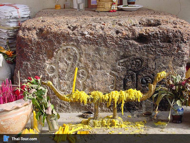 เป็นลายพระหัตถ์ของพระบาทสมเด็จพระจุลจอมเกล้าเจ้าอยู่หัว รัชกาลที่ห้า เมื่อครั้งพระองค์เสด็จประพาสปราจีนบุรีเมื่อปี พ.ศ.2451 ทรงได้จารึกข้อความไว้บนแผ่นศิลาแลง