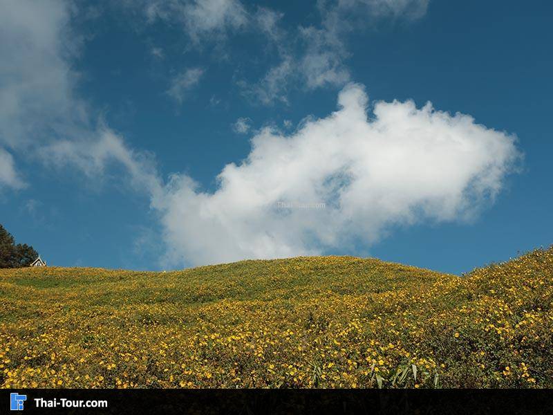 ได้ชื่อว่าเป็นทุ่งบัวตองที่อลังการและใหญ่ที่สุดในไทย เราจะสามารถไปชมได้ช่วงปลายฝนต้นหนาว หลายคนไปจะได้เห็นทุ่งดอกบัวตองเหลืองอร่ามที่บานสะพรั่งปกคลุมอยู่บนยอดดอยแม่อูคอ