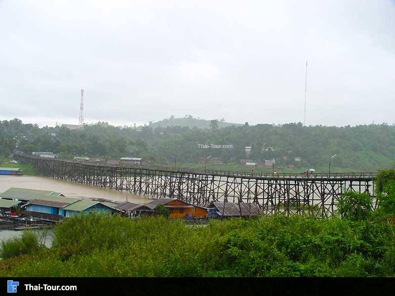 เป็นสะพานที่มีความยาว 850 เมตร เป็นสะพานไม้ที่ค่อนข้างยาว ส่วนใหญ่แล้วคนที่นิยมไปสังขละบุรี เพื่อไปถ่ายรูปกับสะพานนี้ซะส่วนใหญ่ แต่ที่น่าสนใจของที่นี่คือ อากาศดี มีโรงแรมให้บริการหลายที่ มาแล้วไม่ผิดหวัง