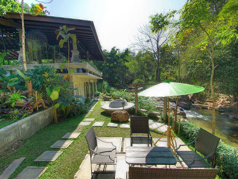 รีสอร์ทตกแต่งสไตล์บูติค ห้องพักแบบปูนเปลือย ติดแม่่น้ำแม่สา อยู่ใกล้น้ำตก ต้นไม้รายล้อม เหมาะแก่การมาพักผ่อน มีสระว่ายน้ำให้ได้ผ่อนคลาย ใกล้กับแหล่งท่องเที่ยวแบบอนุรักษ์