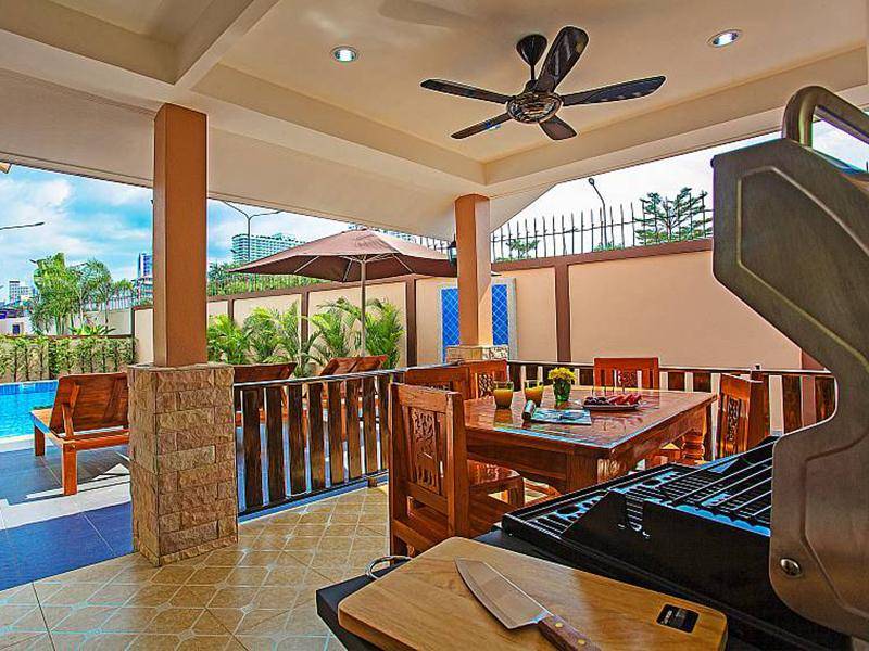 9.จอมเทียน ซัมเมอร์ไทม์ วิลล่า บี (Jomtien Summertime Villa B) ตั้งอยู่บนถนนจอมเทียนสาย2 ใช้เวลาเดินเท้าเพียง 5 นาทีก็จะถึงหาดจอมเทียน เป็นบ้านพักที่สวยงามสะดวกสบายพร้อมสระว่ายน้ำส่วนตัวขนาดใหญ่พร้อมระเบียงส่วนตัวที่มีเก้าอี้อาบแดด สิ่งอำนวยความสะดวกต่างๆ อาทิเช่น ห้องนั่งเล่น, ห้องน้ำ, พื้นที่รับประทานอาหาร, ห้องครัวสไตล์ตะวันตกและห้องครัวไทยกลางแจ้ง พร้อมอุปกรณ์ทำอาหาร สามารถทำอาหารทานเองได้