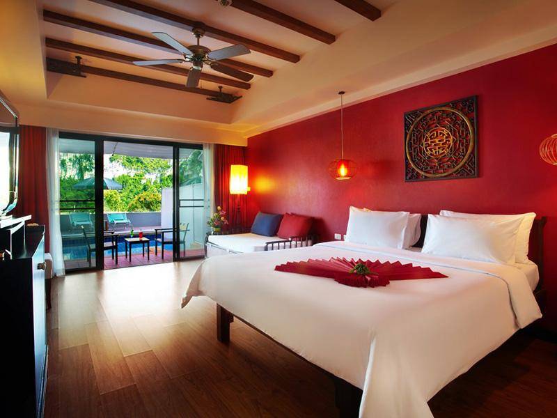 รีสอร์เชิงเขาตัวเมืองอ่าวนาง วิวทะเลอันดามัน รีสอร์ทมีห้องอาหาร ห้องออกกำลังกายและมีสระว่ายน้ำกลางแจ้ง อินเทอร์เน็ตไร้สายฟรี ห้องพักกว้างขวาง ตกแต่งแบบผสมผสานระหว่างสไตล์ไทยและจีนในโทนสีที่สดใส