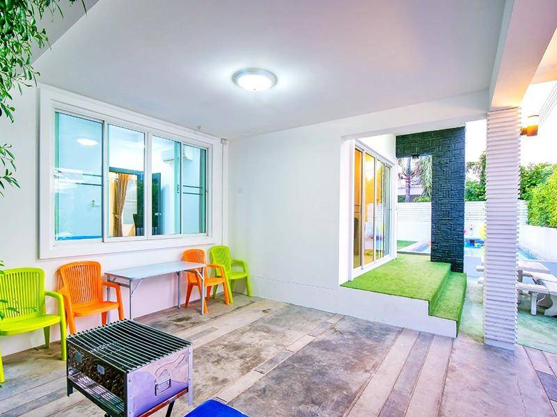 วิลล่าหัวหินนี้มี 2 ห้องนอน 2 ห้องน้ำห้องนั่งเล่น 1 ห้องครัวสมัยใหม่และสระว่ายน้ำกลางแจ้งส่วนตัว ขนาด 7×3 เมตร โต๊ะพูล อุปกรณ์ครัวทำอาหาร เตาปิ้งย่าง ครบครัน
