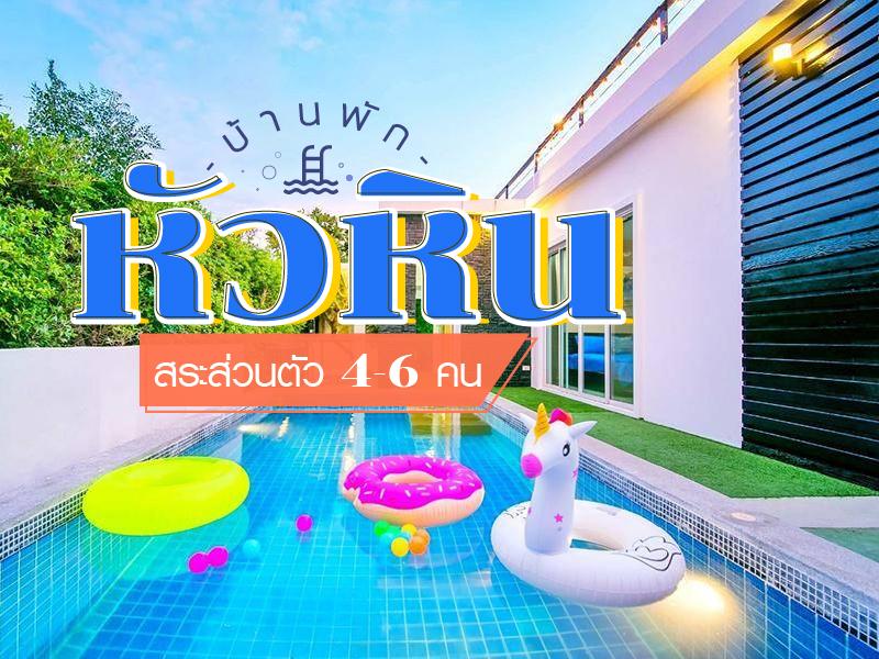 บ้านพักหัวหิน สระว่ายน้ำส่วนตัว 4 - 6 คน ทำอาหารได้ เป็นส่วนตัว ใกล้ทะเล