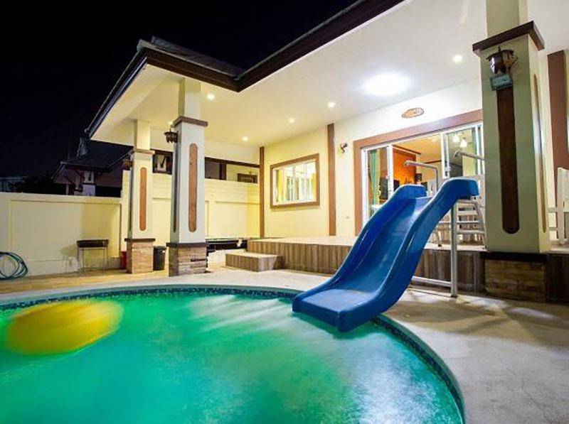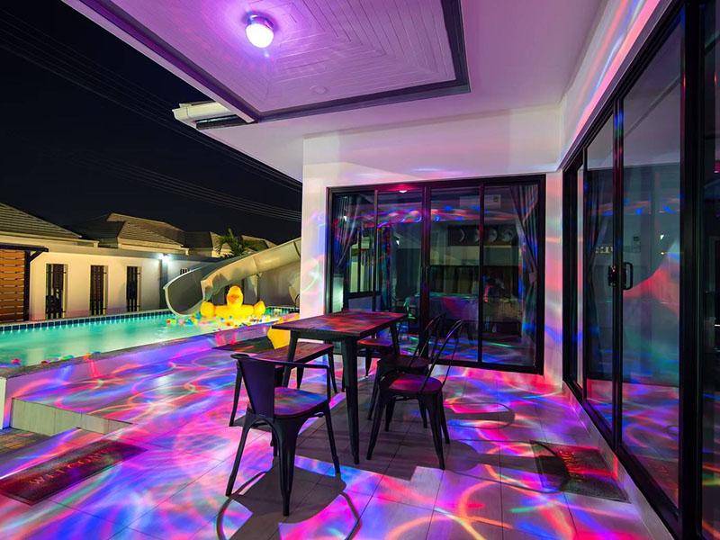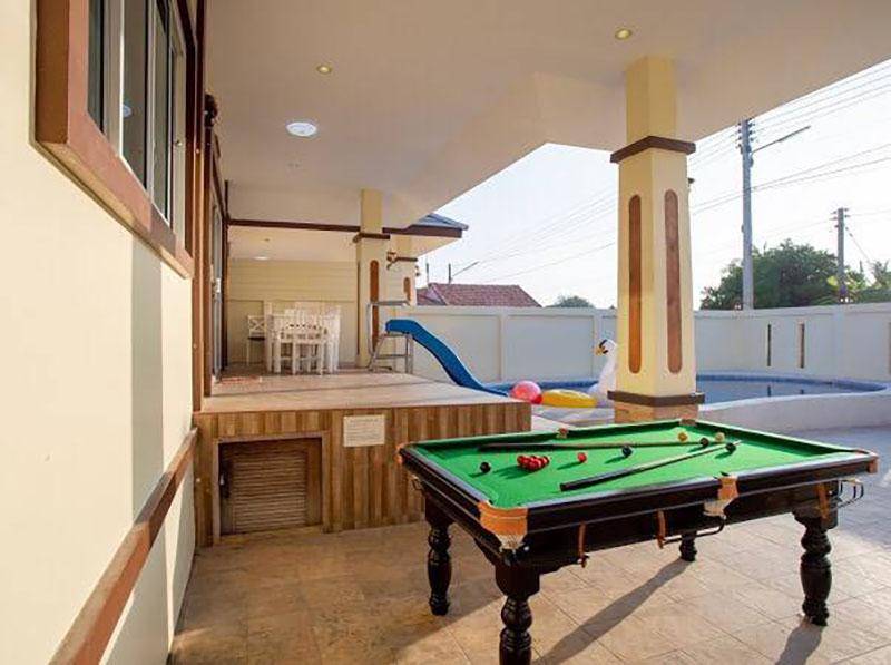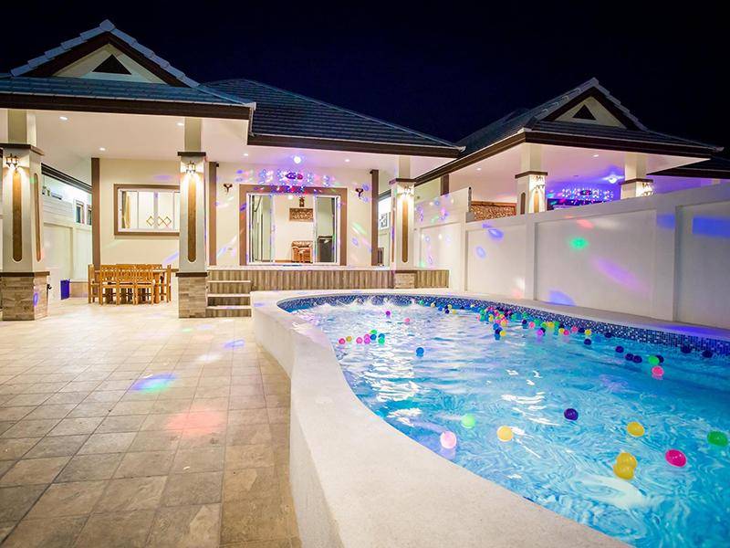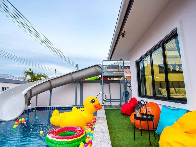 ภายนอกบ้านพักยังมี สระว่ายน้ำส่วนตัว ฟรีลูกบอลสีในสระว่ายน้ำ ฟรีWifi มีเตาปิ้งย่างและอุปกรณ์ครัวครบครัน เตรียมไว้สำหรับปาร์ตี้ อีกด้วย