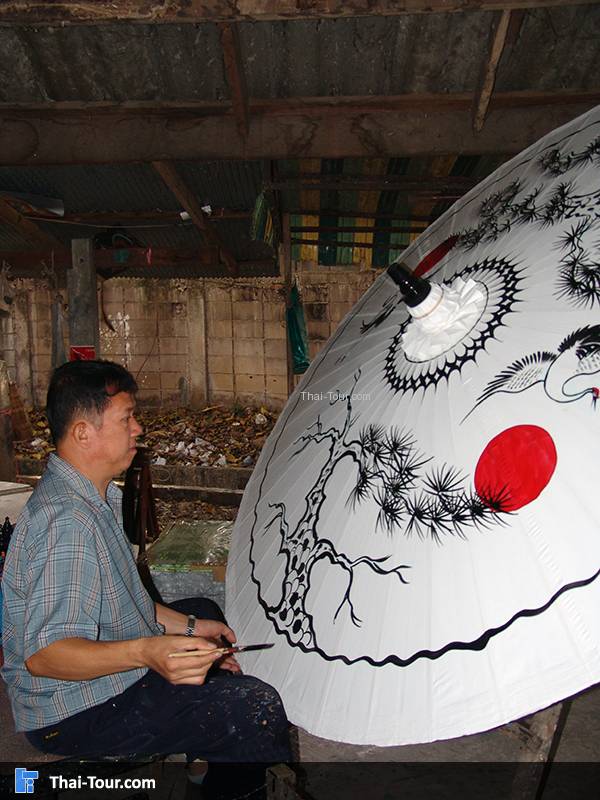 4. ยกระดับมาตรฐานการผลิต ตลอดจนการพัฒนารูปแบบให้เป็นที่นิยมของนักท่องเที่ยวซึ่งมีผลสืบเนื่องต่อการขยายตลาดให้กว้างออกไป ทั้งในประเทศและต่างประเทศ และเป็นการสร้างงานสร้างอาชีพให้คนในท้องถิ่นเพิ่มมากขึ้นและในปี 2526 ได้มีการจัดงานเทศกาลร่มบ่อสร้างเป็นปีแรก ปรากฎว่างานนี้ได้รับความชื่นชมจากผู้ไปเที่ยวงานมาก เนื่องจากเป็นลักษณะการจัดงานที่แตกต่างจากงานเทศกาลอื่นๆ โดยลักษณะงานเป็นแบบ “Street Fair” กล่าวคือ ใช้พื้นที่ของหมู่บ้านบ่อสร้าง ซึ่งขนานกันตลอดแนวถนน ตั้งแต่บริเวณปากทางเข้าหมู่บ้านจนถึงท้ายหมู่บ้านระยะทางประมาณ 1 กิโลเมตร เป็นสถานที่จัดงาน โดยตกแต่งบ้าน และร้านค้าต่างๆ เป็นแบบล้านนาไทย ใช้ร่มสัญลักษณ์ของหมู่บ้านเป็นส่วนประกอบสำคัญในการตกแต่งพร้อมทั้งประดับประทีปโคมไฟแบบพื้นเมือง มีกิจกรรมประกวดการแข่งขัน นิทรรศการ การแสดงทางวัฒนธรรม การแสดงพื้นบ้าน มหรสพนานาชนิด ตลอดทั้งวันทั้งคืน