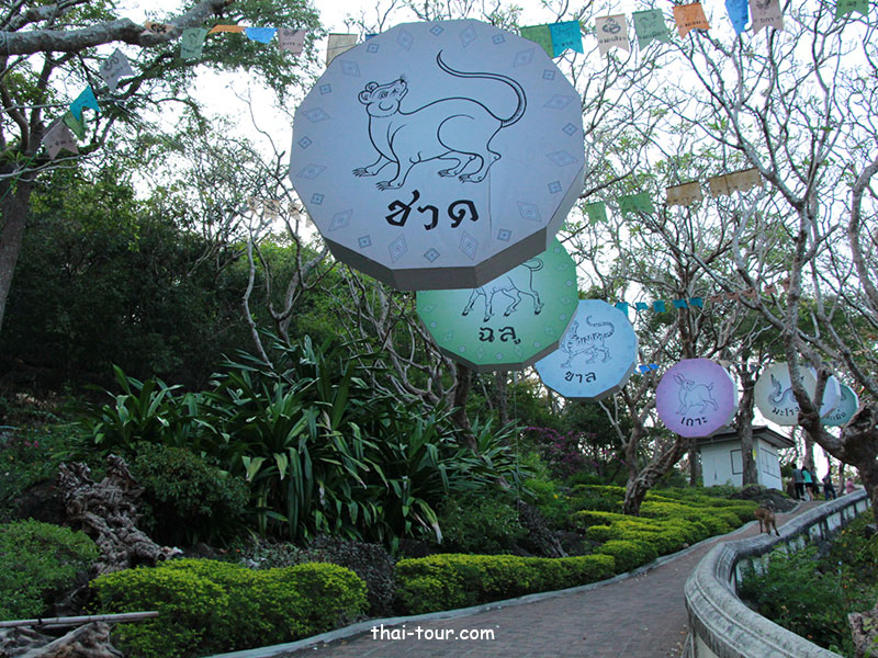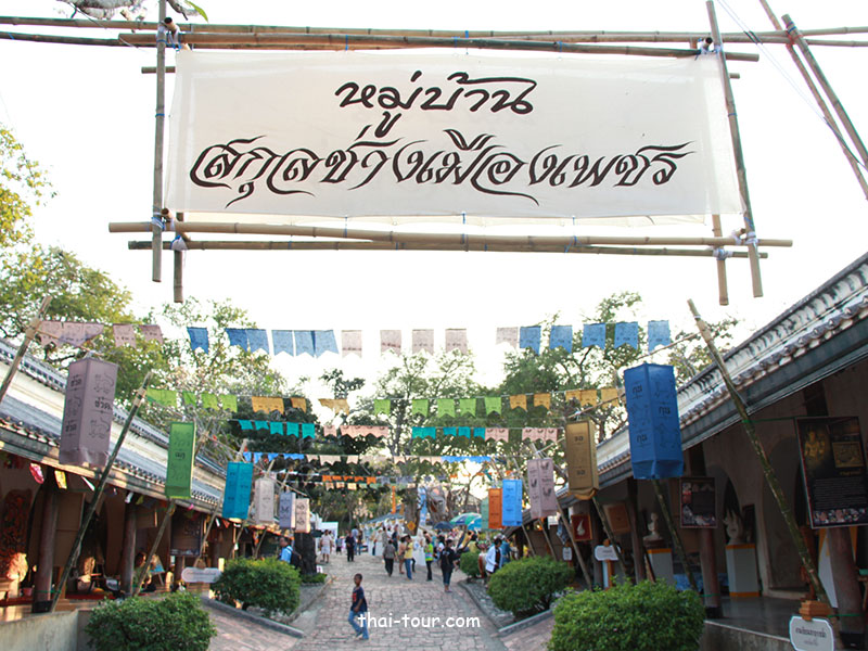 มีธงพร้อมโคมไฟประดับ