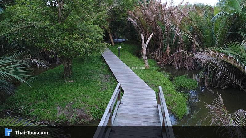 สวนศรีนครเขื่อนขันธุ์ จัดเป็นสวนสาธารณะที่พักผ่อนหย่อนใจและออกกำลังกายสำหรับประชาชนและเป็นที่ศึกษาระบบนิเวศน์ของพันธุ์พืชและพันธุ์สัตว์ในท้องถิ่นและพื้นที่ใกล้เคียง มี 2 ส่วน สวนสาธารณะที่ปรับปรุงจากพื้นที่สวน จัดทำเป็นสนามหญ้า และปลูกไม้ดอกไม้ประดับอย่างสวยงาม มีสระน้ำขนาดใหญ่ มีศาลาริมน้ำให้นั่งพักผ่อน สภาพพื้นที่ท้องร่องสวน โดยมีสะพานไม้หรือบอร์ดวอล์คทอดยาวออกไปให้เดินชมบรรยากาศที่ร่มรื่น ลักษณะของสวนเป็นการผสมผสานของสวนสาธารณะที่มีการจัดสภาพภูมิทัศน์ให้สวยงาม ประกอบด้วยพันธุ์ไม้น้ำ พันธุ์ไม้ท้องถิ่นที่สามารถเจริญเติบโตได้ในน้ำกร่อยกับการรักษาสภาพสวนเกษตรดั้งเดิมซึ่งเป็นสวนผลไม้เก่าไว้ โดยเป็นพื้นที่สีเขียวที่รัฐบาลกำหนดให้เป็น “ปอดของกรุงเทพฯ” มีสะพานไม้ทอดยาวให้เดินชมพื้นที่อันสงบร่มรื่น รวมถึงหอชมวิวสูง 7 เมตร ที่สามารถชมทิวทัศน์ได้โดยรอบ มีจักรยานให้เช่าสำหรับขี่ชมรอบสวน
