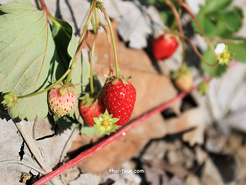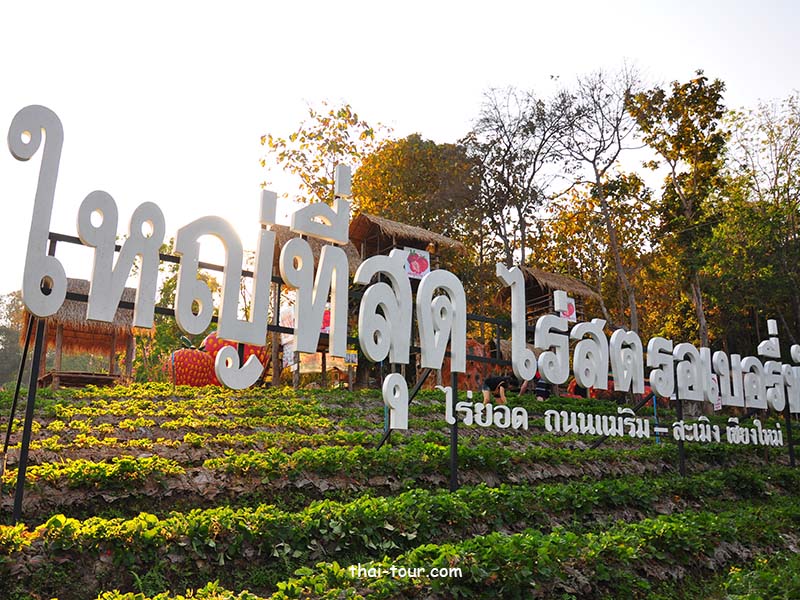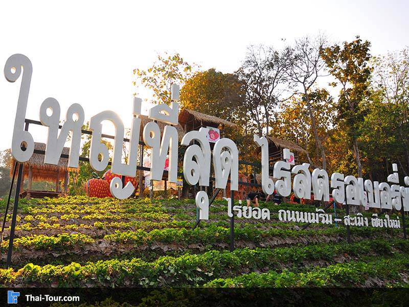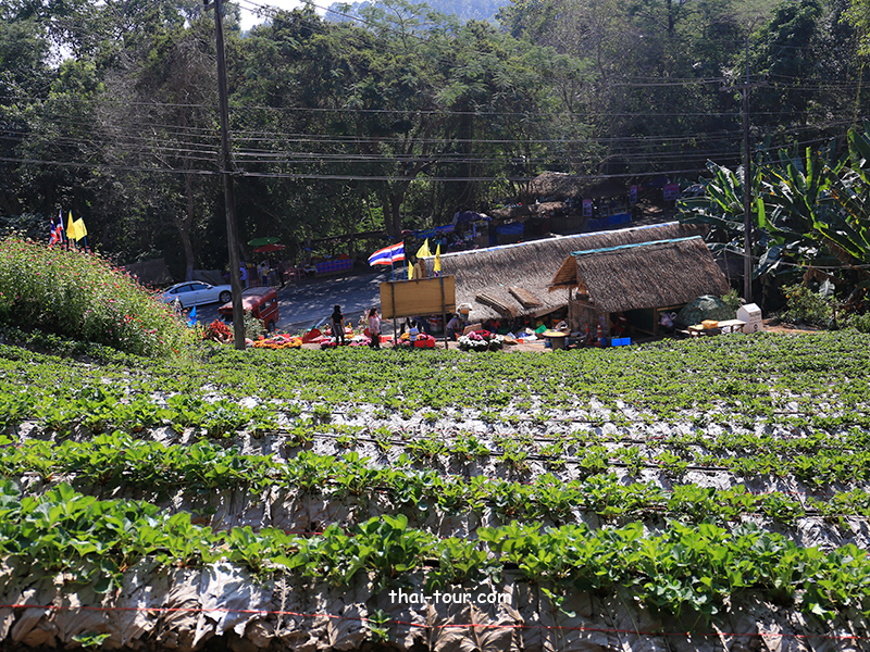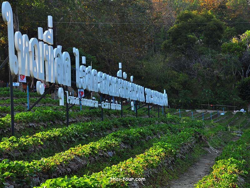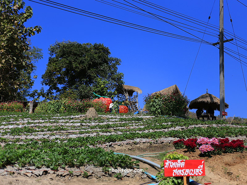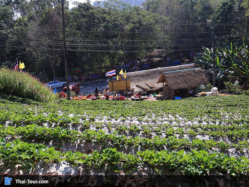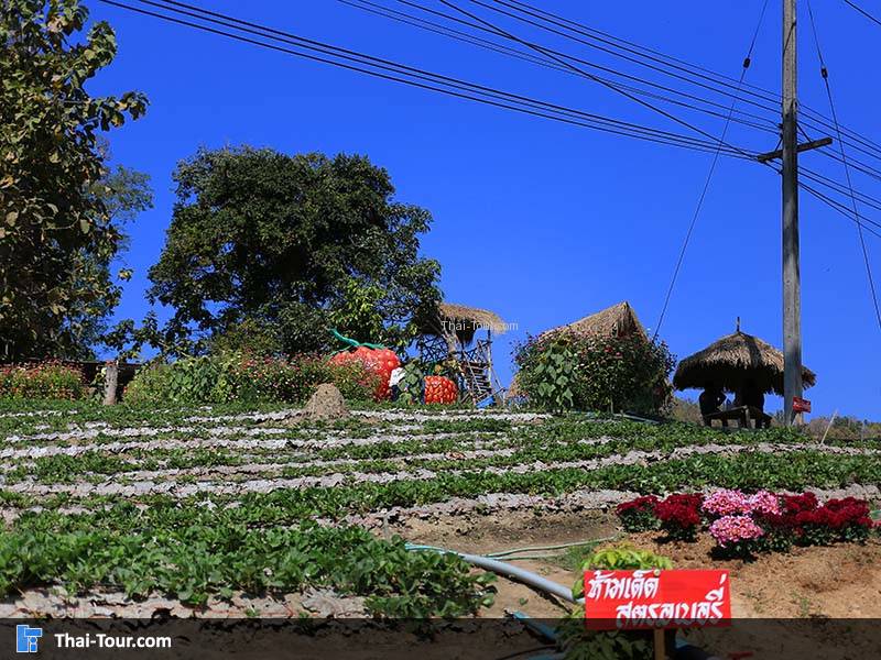 ไร่สตรอเบอรี่พันธุ์หวานใหญ่ที่สุด  ปลูกเรียงตามเป็นขั้นบันไดตามไหล่เขา ลูกสีแดงสดใสน่ากิน เนื้อแน่น และรสชาติหอมหวานเมื่อสุกเต็มที่ สามารถเข้าไปถ่ายรูปในบริเวณไร่ได้ ไม่สามารถเด็ดสตรอเบอรี่จากในไร่ได้ และมีบริการจำหน่ายต้นกล้าสตรอเบอรี่ปลูกให้ทั้งในและต่างจังหวัด