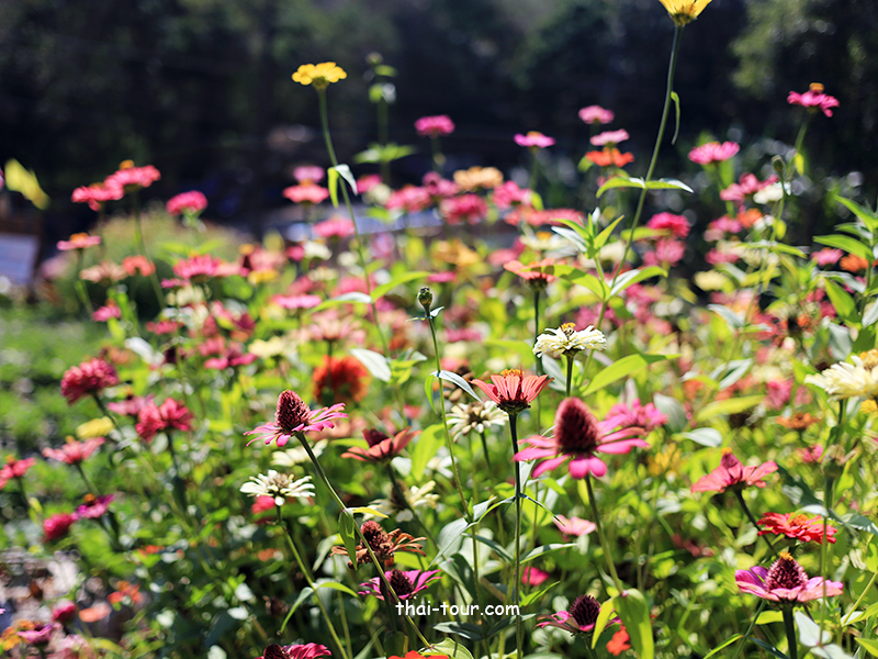 ดอกไม้ในสวนสตอเบอรี่ อากาศดี สวยสดใส