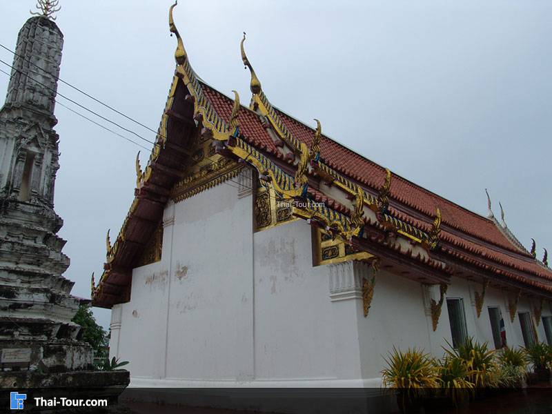 เป็นที่ประดิษฐานพระพุทธไสยาสน์ที่งดงามมากองค์หนึ่งของ ประเทศไทย สันนิษฐานว่าสร้างในสมัยอยุธยาตอนต้น มีความยาวจากพระเมาลีถึงปลายพระบาท ประมาณ12วา ( 22.58 เมตร) ก่ออิฐถือปูนปิดทอง ไม่ปรากฏหลักฐานการสร้าง และผู้สร้าง แต่มีในพระราชพงศาวดารในสมัยสมเด็จพระนเรศวรมหาราช ว่าพระองค์ก่อนจะยกทัพไปรบ กับพระมหาอุปราชได้เสด็จมาชุมนุมพล และถวายสักการะ บูชาก่อนยกทัพไปตีพม่า และในสมัยสมเด็จพระเจ้าอยู่หัวท้ายสระ ประมาณปี พ.ศ. 2269 ว่าวิหารที่ประดิษฐาน อยู่ริมแม่น้ำเจ้าพระยานั้น กระแสน้ำได้กัดเซาะตลิ่ง จนเกือบถึงพระวิหาร