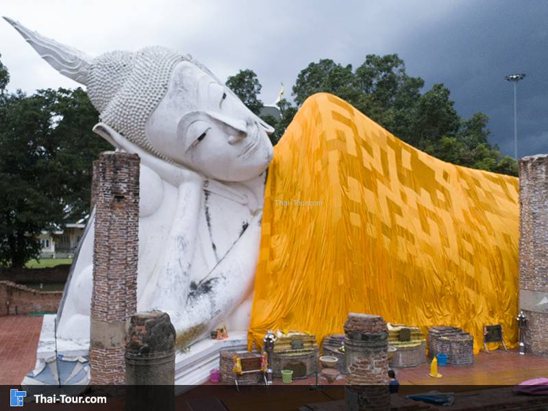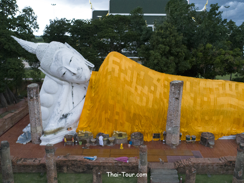ปัจจุบัน องค์พระนอนอยู่กลางแจ้งไม่มีวิหารคลุมเช่นพระนอนองค์อื่น เนื่องจากวิหารเดิมคงหักพังไปนานแล้ว ดังจะเห็นได้จาก เสาพระวิหารที่ยังปรากฏอยู่รอบองค์พระนอน รอบ ๆ องค์พระมีต้นไม้ขนาดใหญ่หลายต้นขึ้นอยู่โดยรอบ ทำให้มีความสงบร่มเย็น เหมาะแก่การไปนมัสการให้เกิดความสุข สงบ ตามธรรมชาติ ซึ่งแปลกออกไปจากบรรยากาศในพระวิหาร