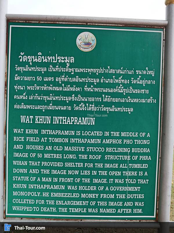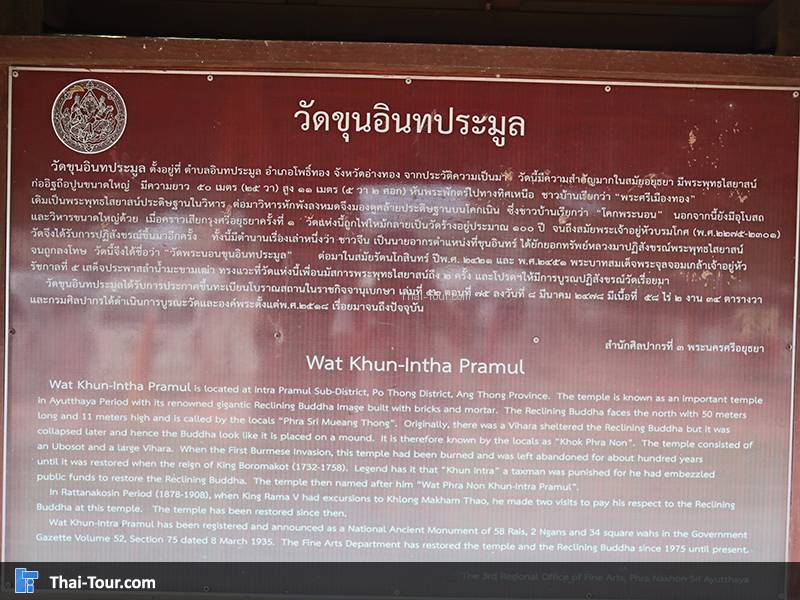 ข้อมูลภาษาไทยและภาษาอังกฤษของวัดขุนอินทประมูล
