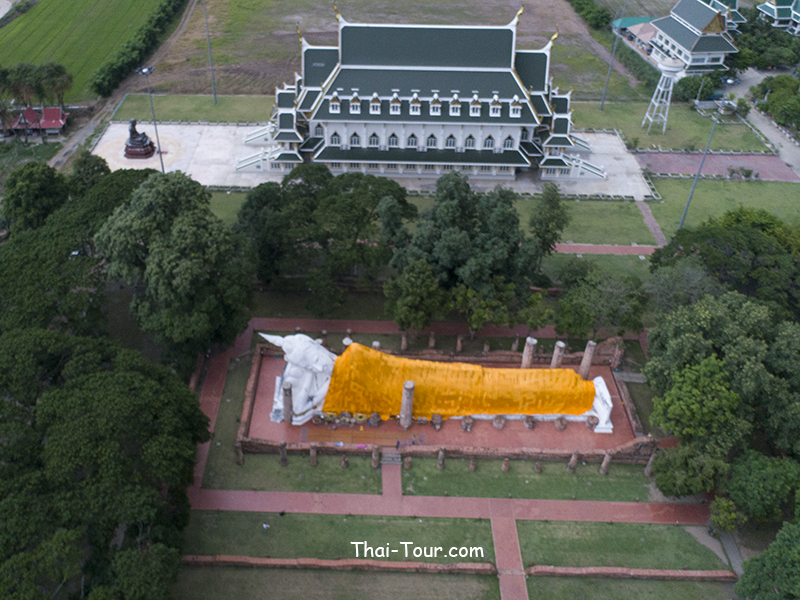 วัดนี้เป็นวัดโบราณ พิจารณาจากซากอิฐแนวเขตเดิมคะเนว่าเป็นวัดใหญ่ เป็นที่ประดิษฐาน พระพุทธไสยาสน์ที่ใหญ่และยาวที่สุดในประเทศไทย มีความยาวถึง 50 เมตร (25 วา) เดิมประดิษฐานอยู่ในวิหาร แต่ถูกไฟไหม้ปรักหักพังไปเหลือแต่องค์พระตากแดดตากฝนนานนับเป็นร้อย ๆ ปี องค์พระนอนมีพุทธลักษณะที่งดงาม พระพักตร์ยิ้มละไม สงบเยือกเย็นน่าเลื่อมใสศรัทธายิ่งนัก พระมหากษัตริย์ไทยหลายพระองค์ได้เคยเสด็จมาสักการะบูชา อาทิ พระเจ้าอยู่หัวบรมโกศ เสด็จมาเมื่อ พ.ศ. 2296 พระบาทสมเด็จพระจุลจอมเกล้าเจ้าอยู่หัว เสด็จฯ ในปี พ.ศ. 2221 และ พ.ศ. 2451 พระบาทสมเด็จพระเจ้าอยู่หัวรัชกาลปัจจุบันเสด็จฯ มาถวายผ้าพระกฐินต้นในปี พ.ศ. 2516 และเสด็จมานมัสการอีกครั้งในปี พ.ศ. 2518 พุทธศาสนิกชนทั่วประเทศต่างนิยมมานมัสการเป็นเนืองนิจนอกจากนี้ภายในบริเวณวัดขุนอินทประมูลยังมีโบราณสถานวิหารหลวงพ่อขาว ซึ่งเหลือเพียงฐาน และผนังบางส่วนและพระพุทธรูป ด้านหน้าพระนอนมีศาลรูปปั้น ขุนอินทประมูล ซึ่งตามประวัติ กล่าวว่าเป็นผู้สร้างพระพุทธไสยาสน์