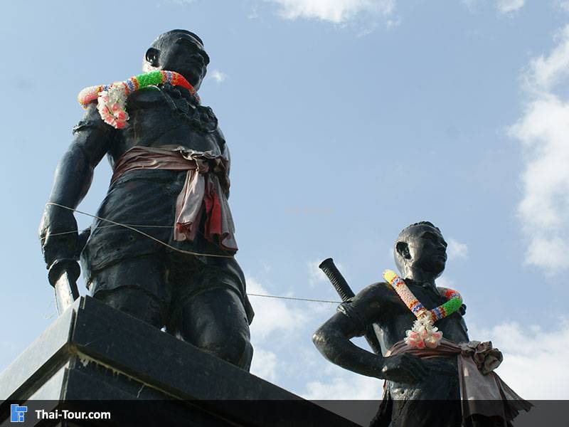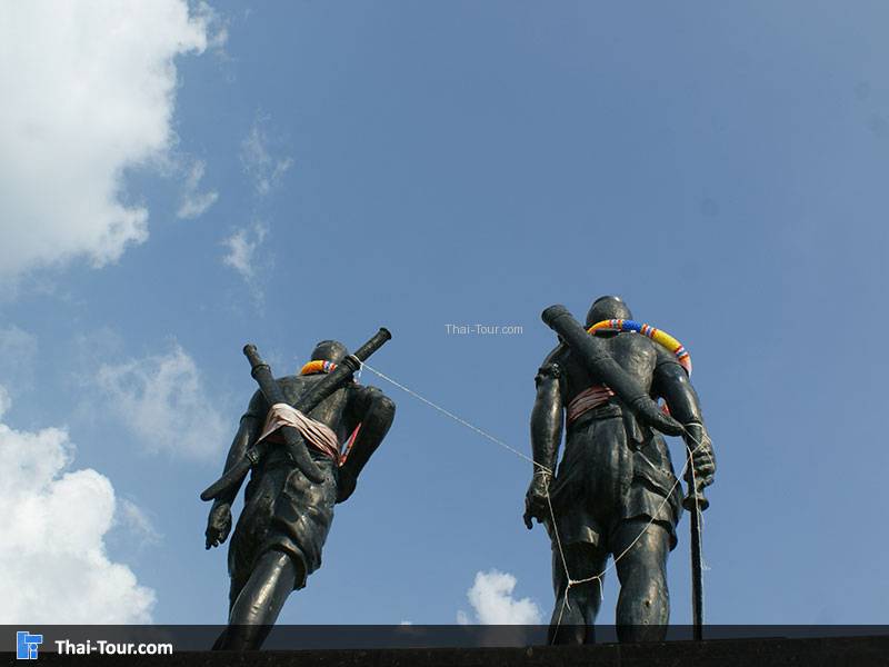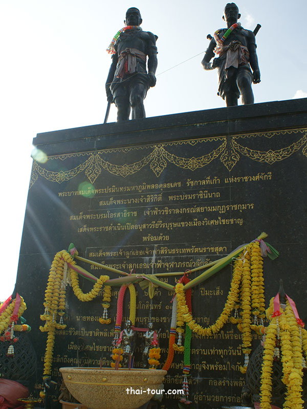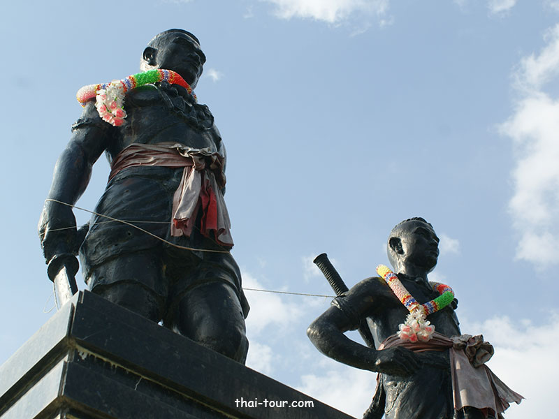 ประดิษฐานอยู่ที่หน้าโรงเรียนวิเศษชัยชาญ หมู่ที่ 2 ตำบลไผ่จำศีล ระหว่างกม.ที่ 26-27 ตามเส้นทางสายศรีประจันต์-วิเศษชัยชาญ เป็นอนุสรณ์สถานที่ชาววิเศษชัยชาญ และชาวอ่างทองร่วมกันสร้าง เพื่อรำลึกถึงคุณงามความดีของวีรบุรุษแห่งบ้านโพธิ์ทะเล ทั้งสองท่านที่ได้สละชีวิต เป็นชาติพลีในการสู้รบกับพม่าที่ค่ายบางระจันอย่างกล้าหาญ เมื่อปี พ.ศ. 2309 สมเด็จพระบรมโอรสาธิราชสยามมกุฏราชกุมาร เสด็จพระราชดำเนินทรงเปิดอนุสาวรีย์ เมื่อวันที่ 25 มีนาคม พ.ศ. 2520