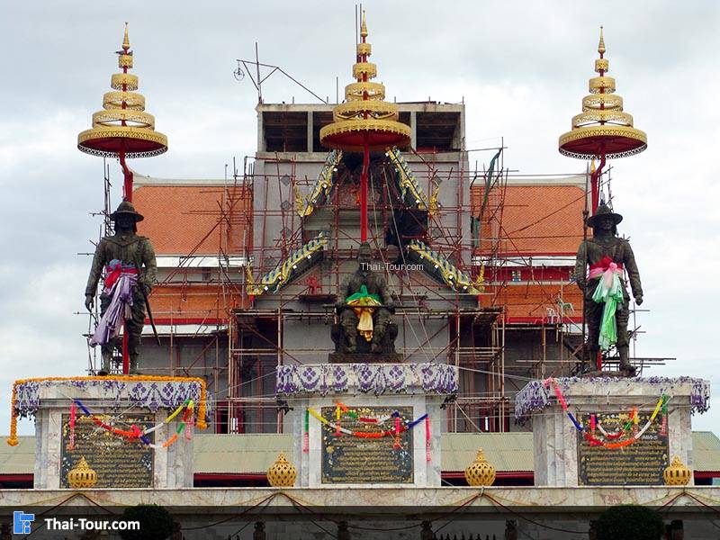 พระบรมราชานุสาวรีย์ พระเจ้าอู่ทอง (กลาง) พระนเรศวรฯ (ซ้าย) และพระเอกาทศรถ (ขวา)