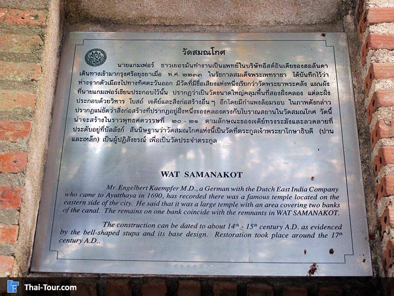 ในสมัยสมเด็จพระนาราญณ์ฯ โดยเรียกชื่อว่า "วัดพระยาพระคลัง" และระบุว่าสมเด็จพระเพทราชาเสด็จไปพระราชทานเพลิงศพเจ้าแม่พระดุสิตซึ่งเป็นมารดาของเจ้าพระยาโกษาธิบดี (เหล็ก) และเจ้าพระยาโกษาธิบดีร (ปาน) ซึ่งเป็นพระนมของสมเด็จพระนารายณ์ฯ เมื่อปีพ.ศ. 2233 ที่วัสมณโกฏฐาราม นี้ด้วย จึงพอสันนิษฐานได้ว่าวัดนี้น่าจะเป็นวัดที่เจ้าพระยาโกษาธิบดีทั้งสองท่านปฏิสังขรณ์เพื่อให้เป็นวัดประจำตะกูล ภายในวัดที่ประกอบด้วยฐานปรางค์ขนาดใหญ่ล้อมด้วยระเบียงคดรูปสี่เหลี่ยม จากการขุดแต่งพบว่าปรางค์ดังกล่าวเป็นปรางค์ที่สร้างขึ้นในราวปลายสมัยอยุธยาตอนกลาง ซึ่งสร้างขอบทับเจดีย์ทรงระฆังกลมที่ตั้งอยู่บนลานประทักษิณที่ต่อเชื่อมกับเจดีย์ประจำมุมทั้งสี่และมีกำแพงแก้วล้อมรอบอีกชั้นหนึ่ง อันเป็นงานที่สร้างขึ้นในสมัยอยุธยาตอนต้นไว้