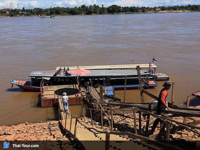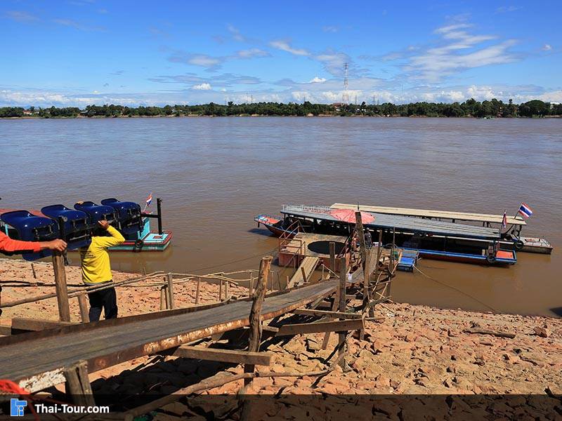 ปากซันและบึงกาฬ อยู่ระหว่างแม่น้ำโขงที่กว้าง ต้องนั่งเรือข้ามฝั่ง