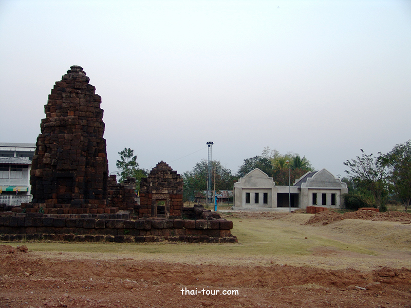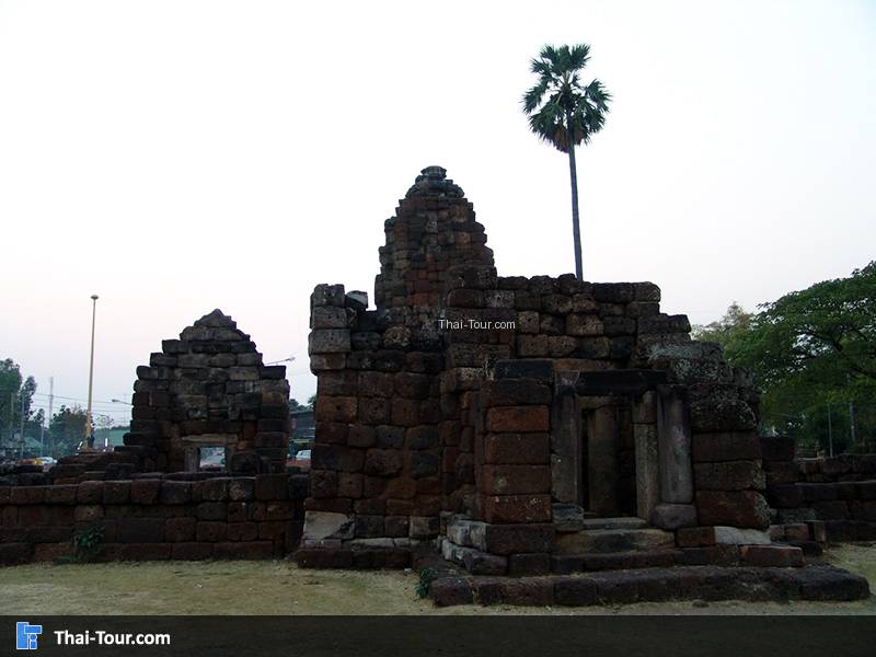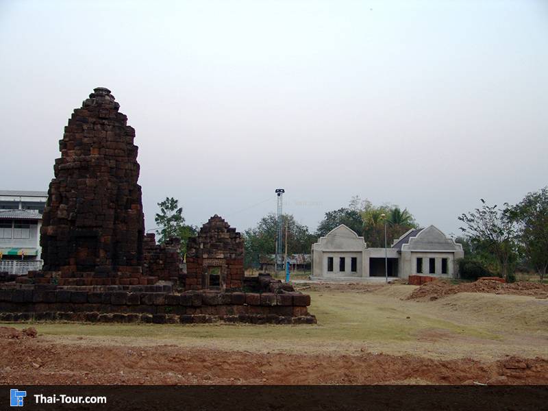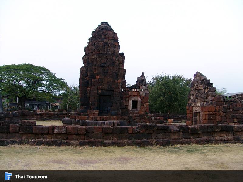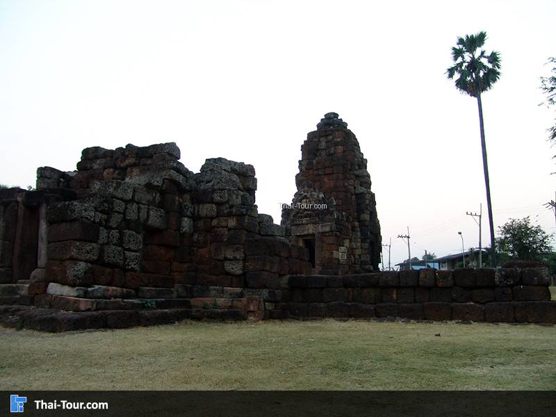 นอกกำแพงตรงมุมทิศตะวันออกเฉียงเหนือมีสระน้ำ ๑ สระ ยังคงสภาพสมบูรณ์ดีมาก โดยเฉพาะปรางค์ประธานซึ่งมีผังเป็นรูปสี่เหลี่ยมจตุรัส ขนาด ๕ เมตร ย่อมุมไม้สิบสองด้านหน้ามีประตูเข้าออกทำเป็นมุขยื่นออกมา ผนังปรางค์มี ๓ ด้าน เป็นประตูหลอก เหนือประตูหลอกด้านทิศเหนือยังมีทับหลังติดอยู่ จำหลักภาพตรงกลางเป็นพระพุทธรูปประทับนั่งปางสมาธิเหนือกาล ซึ่อถือพวงมาลัยไว้ด้วยมือทั้งสองข้าง ด้านข้างทางซ้ายและขวาจำหลักรูปพระโพธิสัตว์อวโลกิเตศวร ๔ กร กับรูปนางปรัชญาปารมิตาด้านหน้ามีทับหลังเช่นกัน สันนิษฐานว่าสลักเป็นภาพเดียวกัน แต่ปัจจุบันลบเลือนมากที่ช่องประตูหลอกด้านทิศเหนือยังมีพระพุทธรูปศิลาปางสมาธิ ศิลปะแบบทวาราวดี ขนาดสูง ๑.๗๕ เมตร หน้าตักกว้าง ๗.๕ เมตร ประดิษฐาน