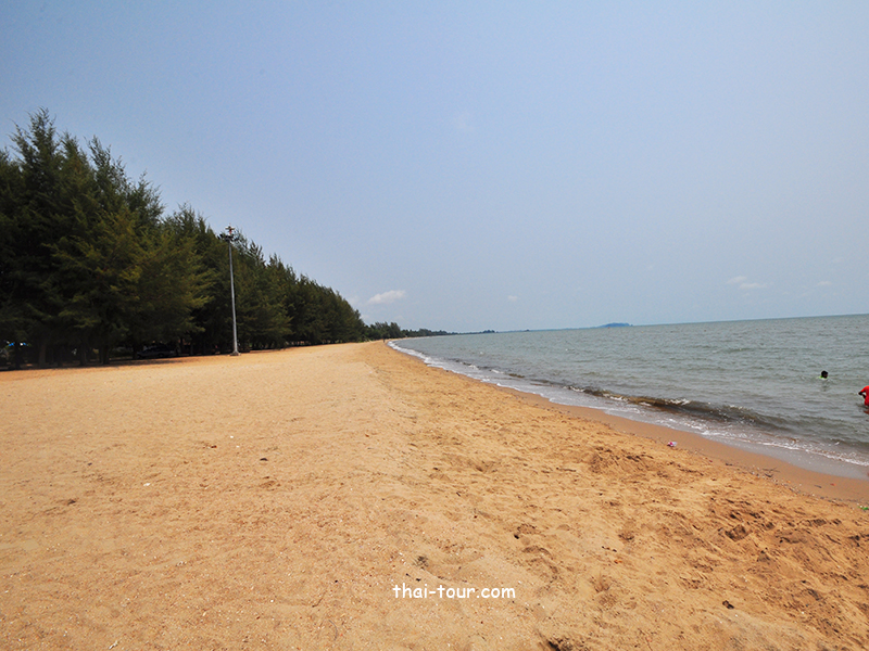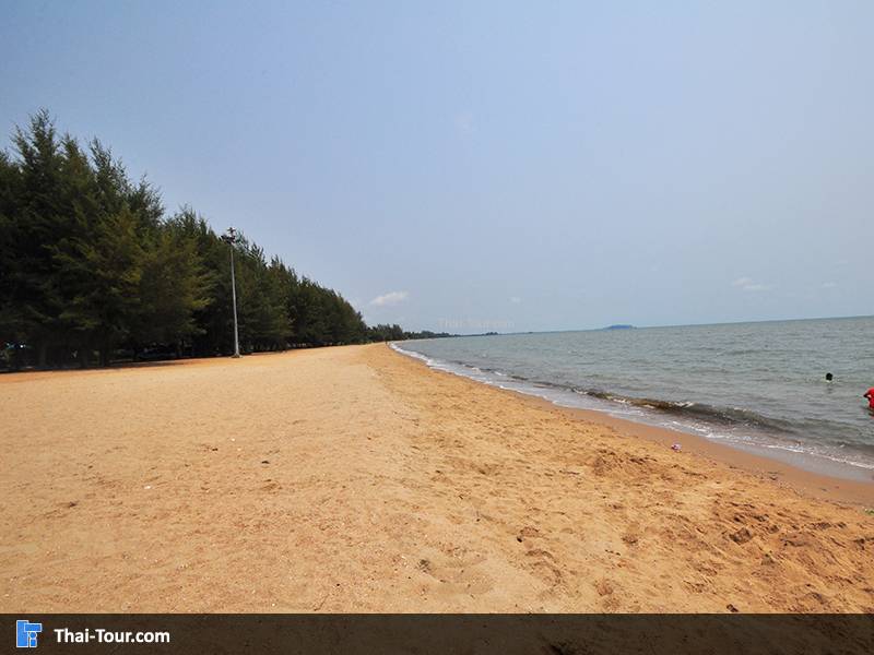 ชายหาดสีน้ำตาลอมแดง อยู่ปากอ่าวที่แม่น้ำจันทบุรี ไหลมาออกอ่าวไทย บรรยากาศร่มรื่นด้วยทิวสนยาวไปตามแนวของชายหาด คู่ขนานกับ แผงร้านค้า เตียอาบแดด และร้านอาหารทะเลสด แทรกตัวด้วยรีสอร์ทตากอากาศสำหรับนักท่องเที่ยว จากบริเวณหาดมองออกไปจะเห็นเกาะจุฬา และเขาแหลมสิงห์อยู่เบื้องหน้า และในบริเวณหาดแหลมสิงห์มีเรือให้เช่าไปดำน้ำเที่ยวเกาะจุฬา เกาะนมสาว ราคาประมาณ 1,500 บาท