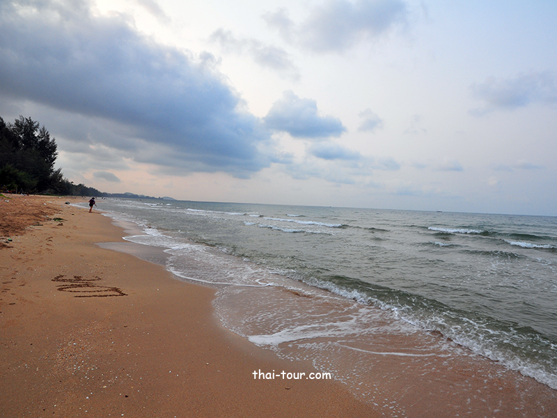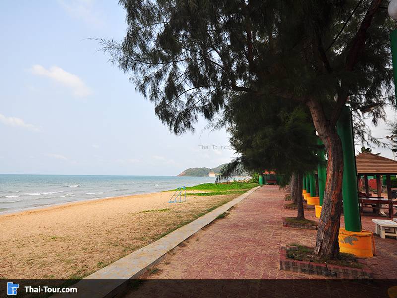 เป็นหาดทรายขาวสะอาดปนสีเทายาวเหยียดสุดสายตา มีบรรยากาศสงบเงียบ ชายหาดมีต้นมะพร้าวเป็นระยะๆ เหมาะสำหรับเป็นที่พักผ่อนหย่อนใจ มีร้านอาหารและที่พักเปิดให้บริการ ราคาไม่แพงมากเหมือนพัทยาหรือเกาะเสม็ด