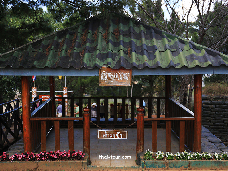 ที่ตั้งห่างออกไปประมาณ 1 กม.ได้อย่างชัดเจน ระหว่างทางจะพบไร่ตามไหล่เขาของหมู่บ้านชาวเขา และพืชผลทางเกษตร เช่น สตอร์เบอร์รี่ ผักกาด ฯลฯ