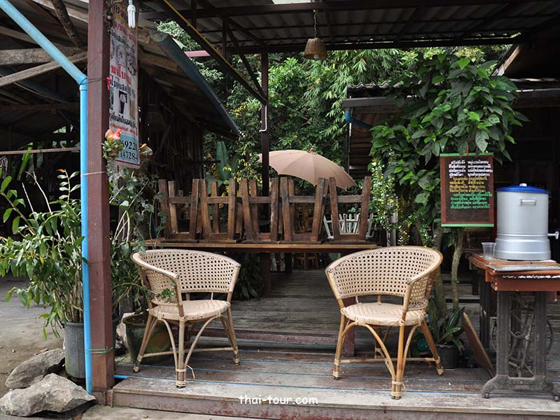 ร้านขายอาหาร ก็มีที่นั่งให้ จัดอย่างสวยงาม น่านั่ง