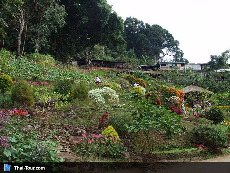 สวนดอกไม่ต้นไม้ในหมู่บ้านชาวเขาเผ่าม้ง ดอยปุย
