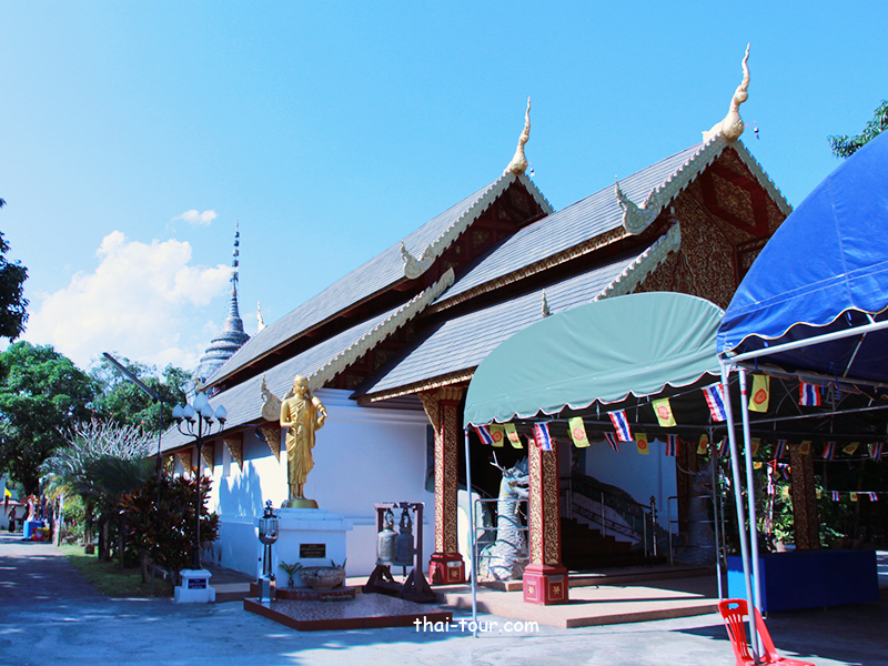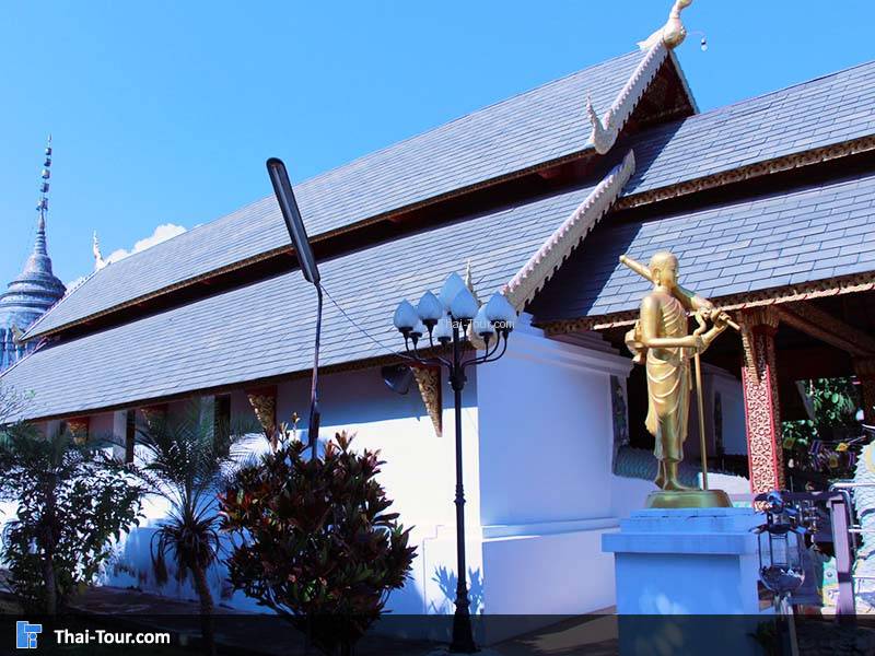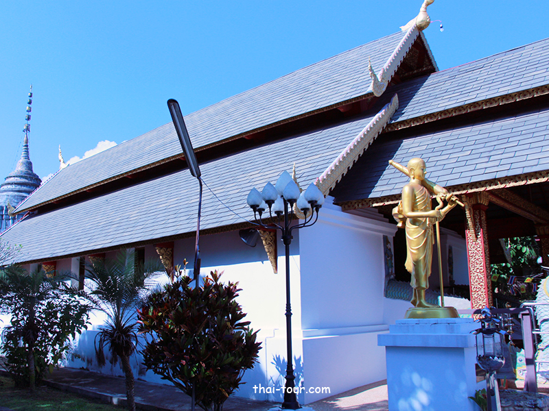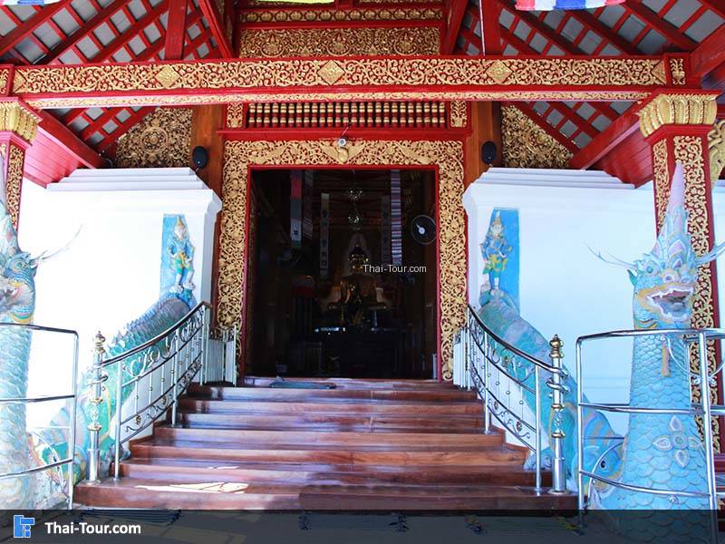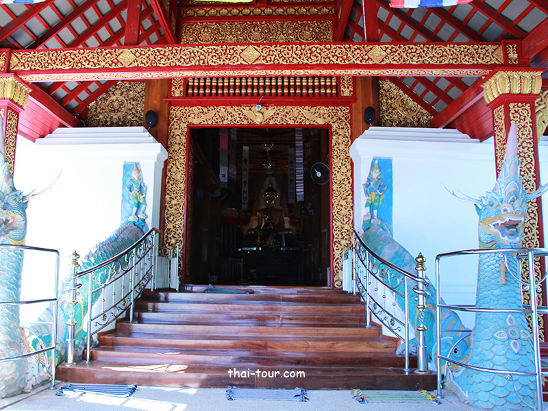 บริเวณทางเข้าวิหาร มีพระพุทธรูปที่ทำจากหินน้ำโขงที่งดงามมาก