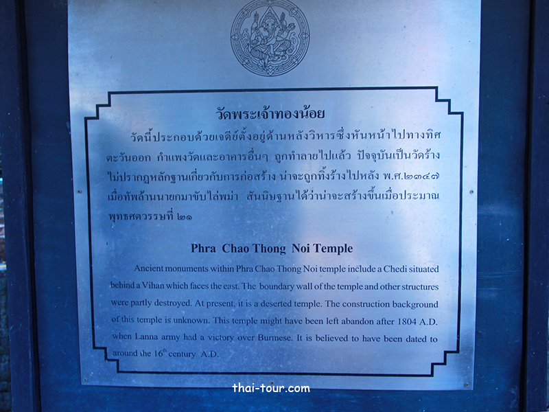 วัดพระเจ้าทองน้อย ปัจจุบันกำแพงวัดและอาคารอื่น ๆ ถูกทำลายไปแล้ว
