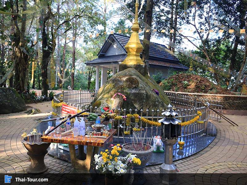 ตั้งอยู่บนดอยช้างมูบ ริมถนนสายพระธาตุดอยตุง บ้านผาหมี ห่างจากทางแยกวัดน้อยดอยตุงประมาร 4 กม. ตำนานสิงหนวัติ และตำนานโยนกนาคพันธ์กล่าวถึงดอยช้างมูบว่า ในรัชกาลที่ 10 พระเจ้าชาติราย ได้มีกัมระปติสะโลเทพบุตร นำไม้นิโครธมาปลูก ณ ดอยช้างมูบ ต้นไม้นั้นเมื่อโตได้สูง 7 ศอก ได้แตกสาขาเป็น 4 กิ่ง สามารถให้ร่มเงาให้แก่คนได้ 20 คน ประชาชนมีความเชื่อว่าหากนำไม้มาค้ำกิ่งนิโครธน้ำจะทำให้บรรลุความปรารถนาเช่นเดียวกับต้นกัลปพฤกษ์ กล่าวคือ ทิศตะวันออก ได้บุตรสมประสงค์ ทิศเหนือได้ทรัพย์ ทิศตะวันตกเจริญรุ่งเรือง และทิศใต้อายุยืนนาน ปัจจุบันคงเหลือเพียงพระสถูปช้างมูบเป็นเจดีย์ขนาดเล็กตั้งอยู่บนก้อนหินใหญ่ ซึ่งมีลักษณะเหมือนช้างหมอบอยู่ สภาพโดยเป็นต้นโพธิ์ใหญ่ และต้นสนซึ่งใช้ปลูกเพื่ออนุรักษ์ดินและน้ำ