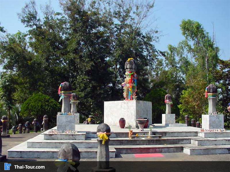 เสาสะดือเมือง 108 หลัก เสาสะดือเมืองนี้ชาวเชียงรายได้ร่วมใจกันสร้างขึ้นเพื่อเป็นเครื่องรำลึกถึงพระมหากรุณาธิคุณของพญามังราย และเพื่อเฉลิมพระเกียรติพระบาทสมเด็จพระเจ้าอยู่หัว ในวโรกาสมหามงคลพระราชพิธีเฉลิมพระชนมพรรษาครบห้ารอบ โดยได้รับความร่วมมือจากสถาบันวิจัยสังคมมหาวิทยาลัยเชียงใหม่และรัฐบาลเยอรมนี เสาสะดือเมือง 108 หลัก ตั้งอยู่บนรูปแบบสมมุติของจักรวาลอันเป็นคติที่มีมาแต่โบราณ ด้านหน้าหันไปทางทิศตะวันออก ลานรอบนอกหมายถึงแผ่นดิน ล้อมรอบด้วยคูน้ำอันเปรียบได้กับน้ำในขอบจักรวาล รอบในยกขึ้นเป็นหกชั้นหมายถึงสวรรค์ทั้งหกของกามภูมิ แล้วยกขึ้นอีกสามชั้นซึ่งหมายถึงรูปภูมิ อรูปภูมิ และชั้นบนสุดเปรียบได้กับนิพพาน สำหรับตัวเสาสะดือเมืองเป็นดั่งเขาพระสุเมรุ ตั้งอยู่บนฐานสามเหลี่ยม หมายถึงตรีกูฏบรรพตหรือผาสามเส้า ล้อมด้วยเสา 108 ต้น อันหมายถึงสิ่งสำคัญในจักรวาล และล้อมรอบอีกชั้นด้วยร่องน้ำห้าร่องซึ่งเปรียบเป็นปัญจมหานทีลดหลั่นเป็นชั้นไหลลงสู่พื้นดินตามคติโบราณของล้านนา เสาสะดือเมืองจะใหญ่เท่าห้ากำมือและสูงเท่ากับความสูงของพระเจ้าแผ่นดิน โคนเสาสะดือเมืองนี้จึงใหญ่เท่ากับห้าพระหัตถ์กำ และสูงเท่ากับส่วนสูงแห่งพระวรกาย พระบาทสมเด็จพระเจ้าอยู่หัวภูมิพลอดุลยเดช พระองค์ได้เสด็จมาเจิมเสาสะดือเมืองนี้ เมื่อวันที่ 27 ม.ค. 2531ชาวเชียงรายมีความเคารพศรัทธาเสาสะดือเมืองแห่งนี้มาก จึงนิยมมาสรงน้ำเพื่อความร่มเย็นเป็นสุขของชาวเมือง และเชื่อว่าน้ำที่สรงเสาสะดือเมืองแล้วเป็นน้ำศักดิ์สิทธิ์