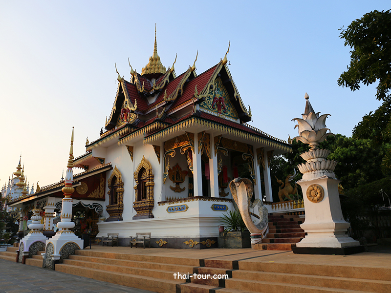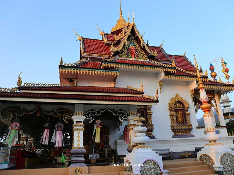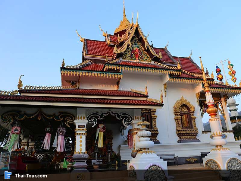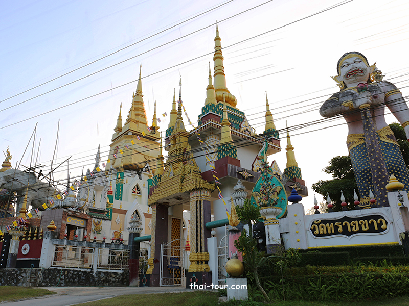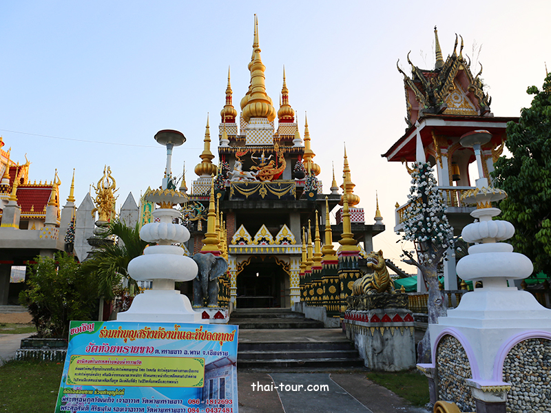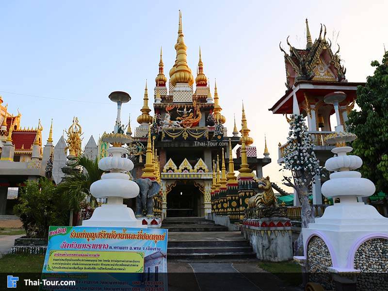 วัดทรายขาว เป็นวัดมหานิกาย เริ่มก่อสร้างเมื่อปี พ.ศ 2400 โดยมีพ่อหนานอริยะ-แม่มัง ได้พาญาติพี่น้องอพยพครอบครัวจากบ้านหลวง อ. ดอยสะเก็ด จ. เชียงใหม่ มาตั้งภูมิลำเนาอยู่ริมลำห้วยทรายขาว ตั้งชื่อหมู่บ้านว่า บ้านห้วยทรายขาว ต.แม่หนาด อ.พาน จ.เชียงราย จนถึงพ.ศ. 2436 พ่ออุ้ยตา-แม่อุ้ยป้อ อริยะมั่ง เป็นบุตรพ่อหนานอริยะ-แม่มั่ง เป็นผู้มีฐานะดีได้เสียสละกำลังทรัพย์เป็นผู้นำย้ายวัดทรายขาวมาตั้งที่อยู่ ปัจจุบัน